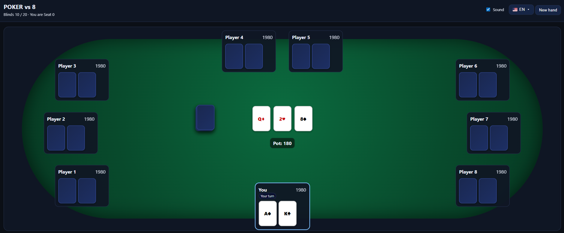 I’m also working on a multiplayer poker mode to play with friends or random players online. Any feedback on bot difficulty, game speed or UI is very welcome!